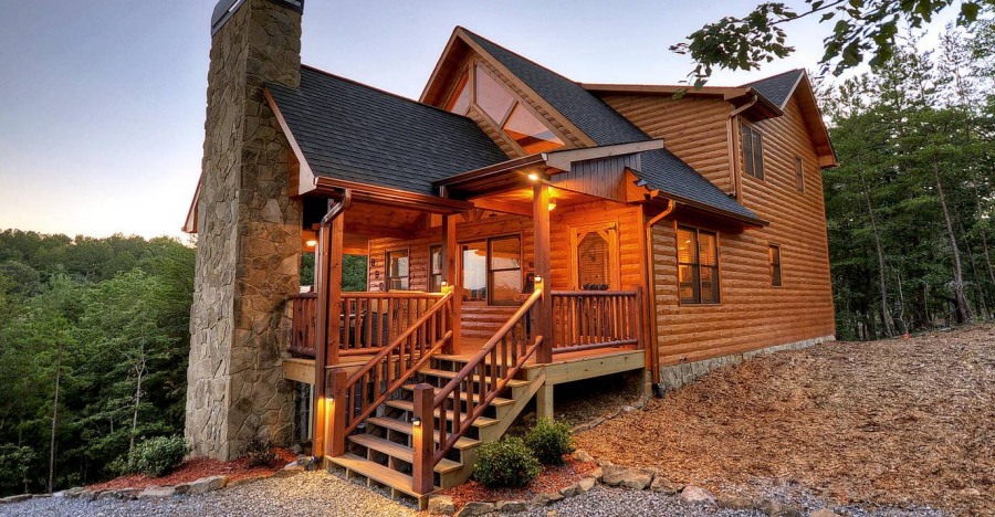 This cabin is nestled in the hills of Fannin County just above Blue Ridge, Georgia.…
