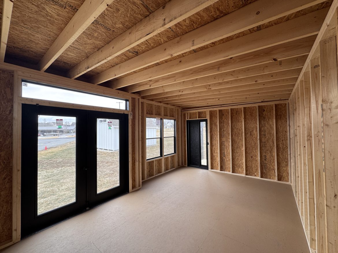 12×24 Storage Serenity Retreat is a durable building according to Sheds Unlimited. It has 4×4 pressure-treated skids for the foundation, 2×6 floor joists spaced 16 inches on center (2×4 joists in the porch area), and 3/4-inch tongue-and-groove flooring for a solid and long-lasting base.