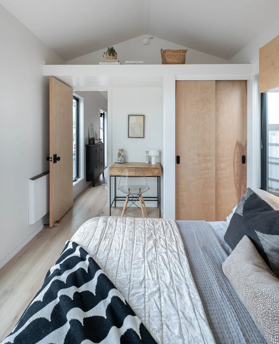 The Urban Gable Park is approximately 30ft long and 11ft wide and is set on a strong quad-axle trailer. Its larger width needs a permit to be on the road but this is mainly a park model and perfect for semi-permanent applications in tiny home communities, backyards, or private land. The bigger surface area allows the rooms to be more spacious, standing height is kept throughout and there are no lofts, ladders, or any nooks that you have to crouch in.