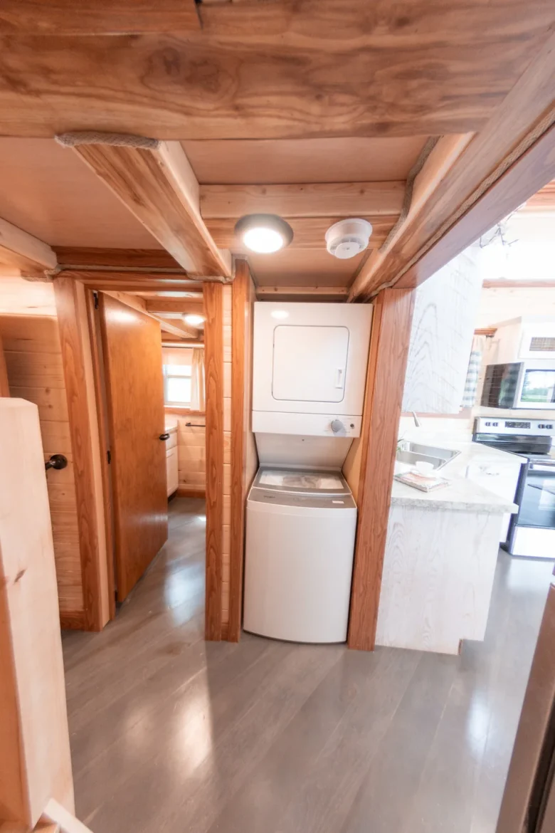 On the main floor, the kitchen is fully functional with the full set of kitchen appliances included. There is also washer and dryer hookups available for a stacked unit. Up to you if you want a standard 19-gallon water heater, or you can choose a tankless model that is great for providing an unlimited supply of hot water.
