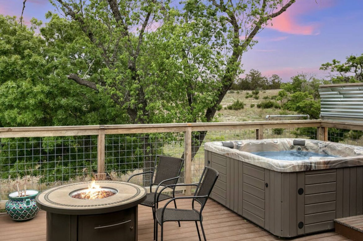 Starview at Jeffrey Springs Hot Tub tiny house combines the cozy elements of a home with the beauty of the great outdoors to create a perfect getaway for couples. This character-filled tiny home set in the peaceful countryside near Fredericksburg, Texas has everything you need for stargazing nights, leisurely baths, and quiet times away from the noise of everyday life.