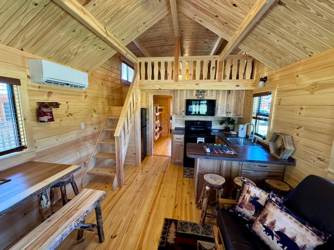 From the moment you arrive, the warm wooden exterior and inviting 10-foot porch welcome you. The cabin sits on a property with multiple units, but thoughtful staggering ensures privacy for every guest. Superhost Aiden and co-host Juan have poured care into creating a space that feels both authentic and comfortable.
