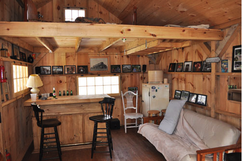 This cabin’s design is captivating; featuring full-length window pane doors fashioned into diamond patterns to let in fresh air on hot summer days. Additional windows on either side and ceiling-level sliding doors ensure plenty of natural lighting, creating an airy yet welcoming ambience. Finally, an inviting patio offers the ideal place for coffee breaks or relaxation breaks.
