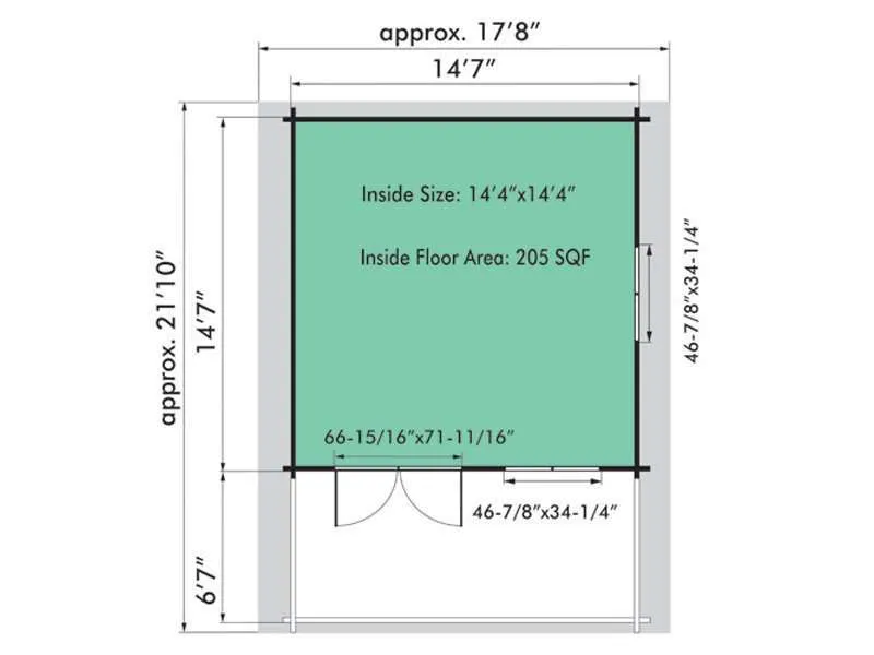Once you remove the different layers, you are going to see that the Dreamcatcher is solidly constructed all the way to the core. While the roof boards–11/16″(17 mm) thick–can easily exchange sun and snow with the air, the floor boards are already a heavy and durable home, at 23/32″(18 mm). Both are part of the unit for easy on-site construction. The part of the double doors that force wide opening at 66-15/16″ x 71-11/16″, thus moving in would be very easy whether you are carrying heavy stuff or simply your favorite blanket. There is no kit for the foundation made of materials and, hence, a gravel base or concrete piers can be used to provide support for the site (optional add-ons for foundations are there to choose from).