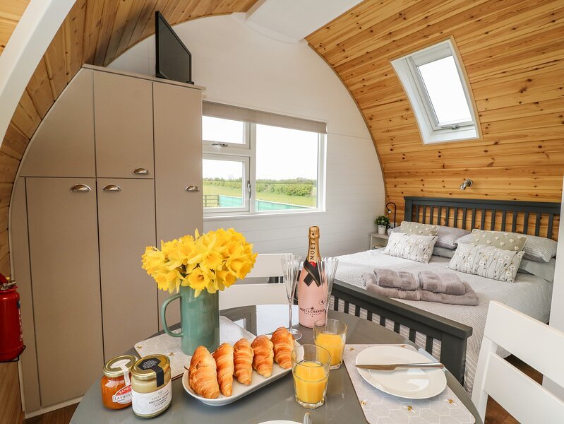 Blue Bell’s charm is, indeed, a matter of its understated style and down-to-earth appeal. The studio is a perfect fit for a couple who are looking for a romantic getaway or a family of a few who are eager to explore the sea. Its pet-friendly condition (with pets kept on leads while on the park) makes it a rare find, and the included amenities—Wi-Fi, heating, linens, and towels—provide an effortless stay. The pod’s 3-night minimum makes it possible for you to stay as long as you want, thus you are free to go fishing at Hornsea Mere, playing tennis at a nearby court, or having your nice time on the decking.